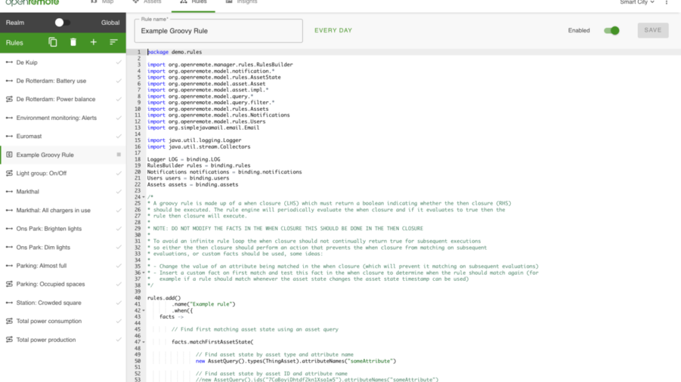 Groovy is a scripting language which allows for defining more complex automation logic. It gives you the freedom to define almost anything in a running system, e.g. defining group behaviour or your own type of alert condition.